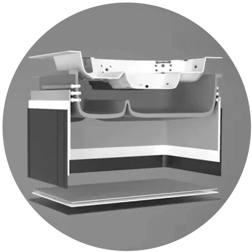 Dzięki naszej innowacyjnej potrójnej izolacji, nasze jacuzzi pozwala zaoszczędzić energię i utrzymuje odpowiednią temperaturę wody przez dłuższy czas.